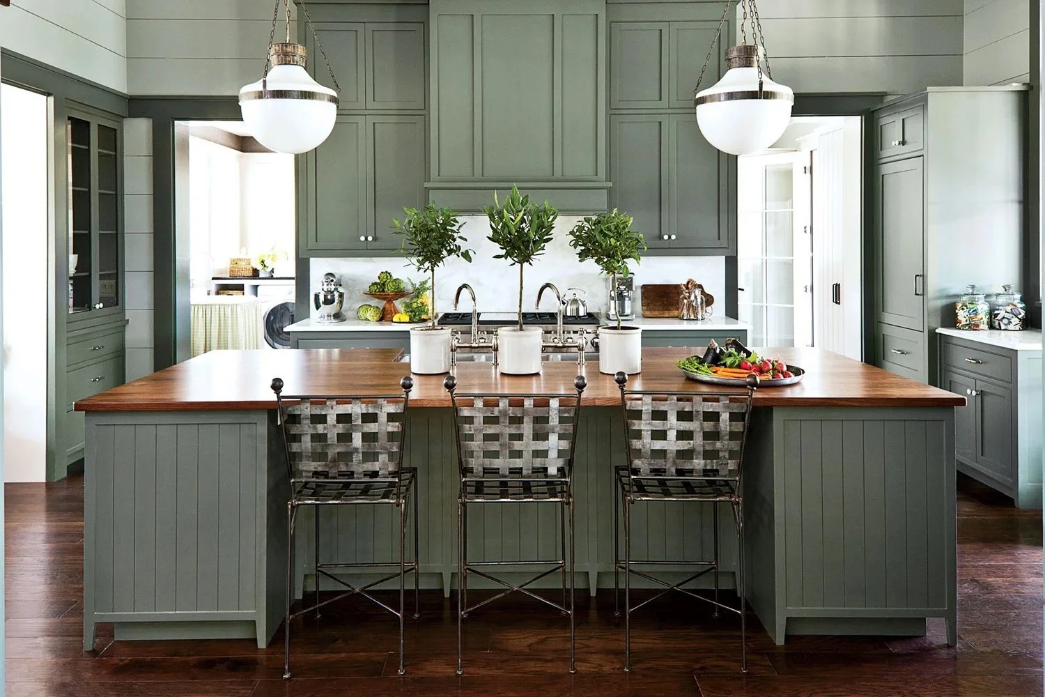 Pair green cabinets with warm wood countertops and earthy tones to create a cozy and inviting space. Or, combine them with white or light-colored backsplash and countertops for a fresh and modern look. Green cabinets can add depth and personality to your kitchen and create a focal point to impress your guests.